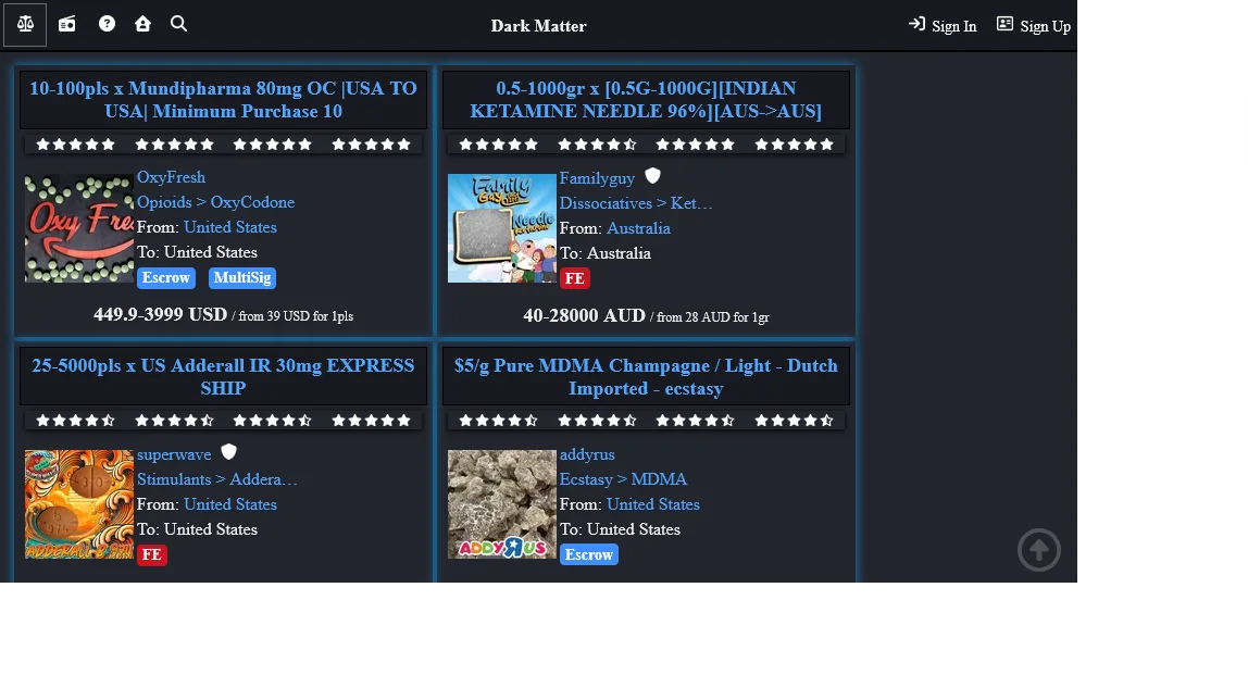 Dark Matter enforces a strict zero-tolerance policy against scams, fake reviews, and vendor manipulation. All reported incidents are investigated by an independent moderation team. Accounts involved in fraudulent activity are permanently banned and their transaction history flagged across the platform.